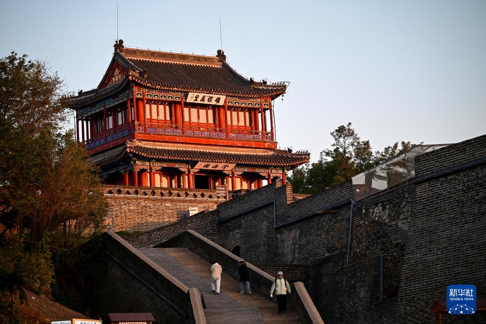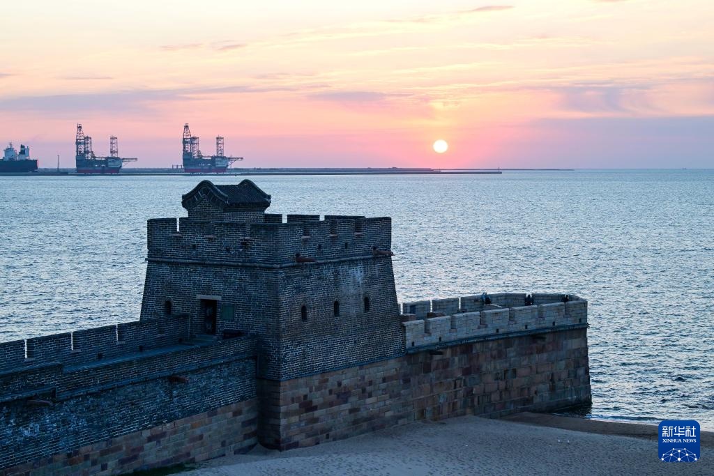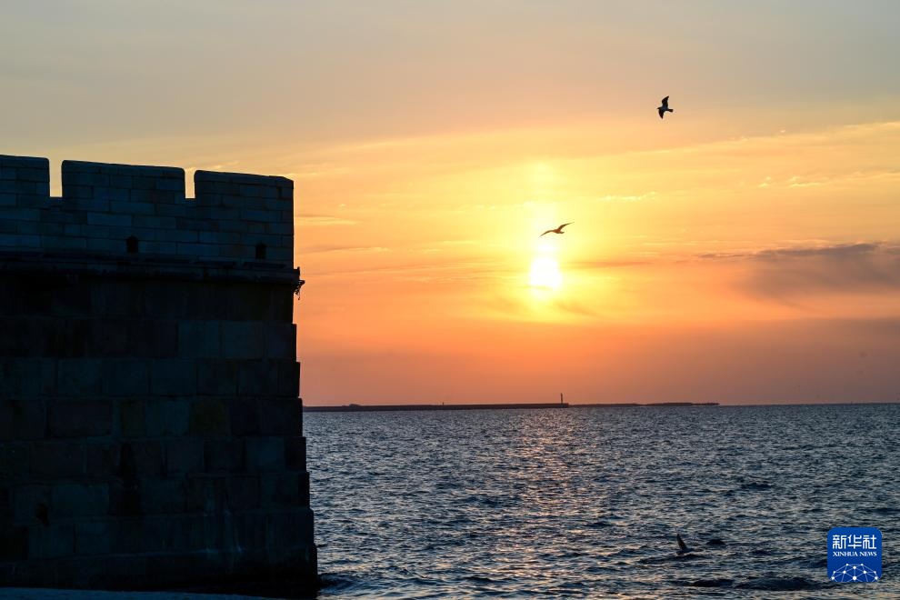 10月26日拍摄的晨曦中的老龙头景区澄海楼。