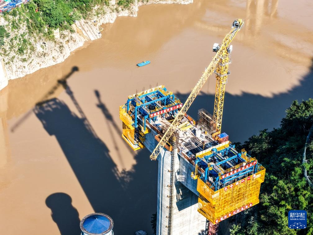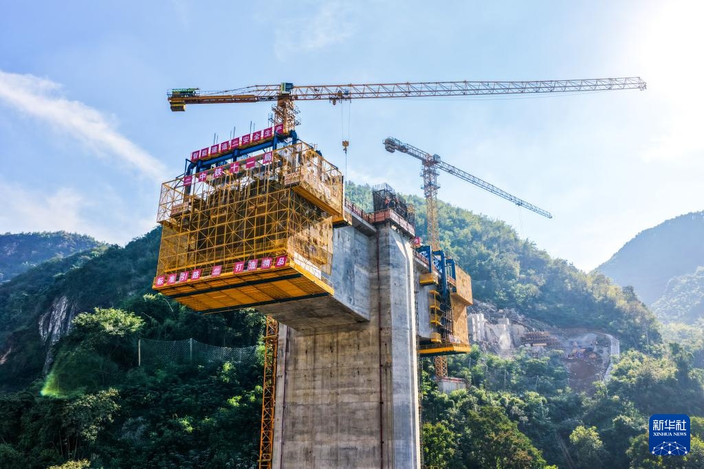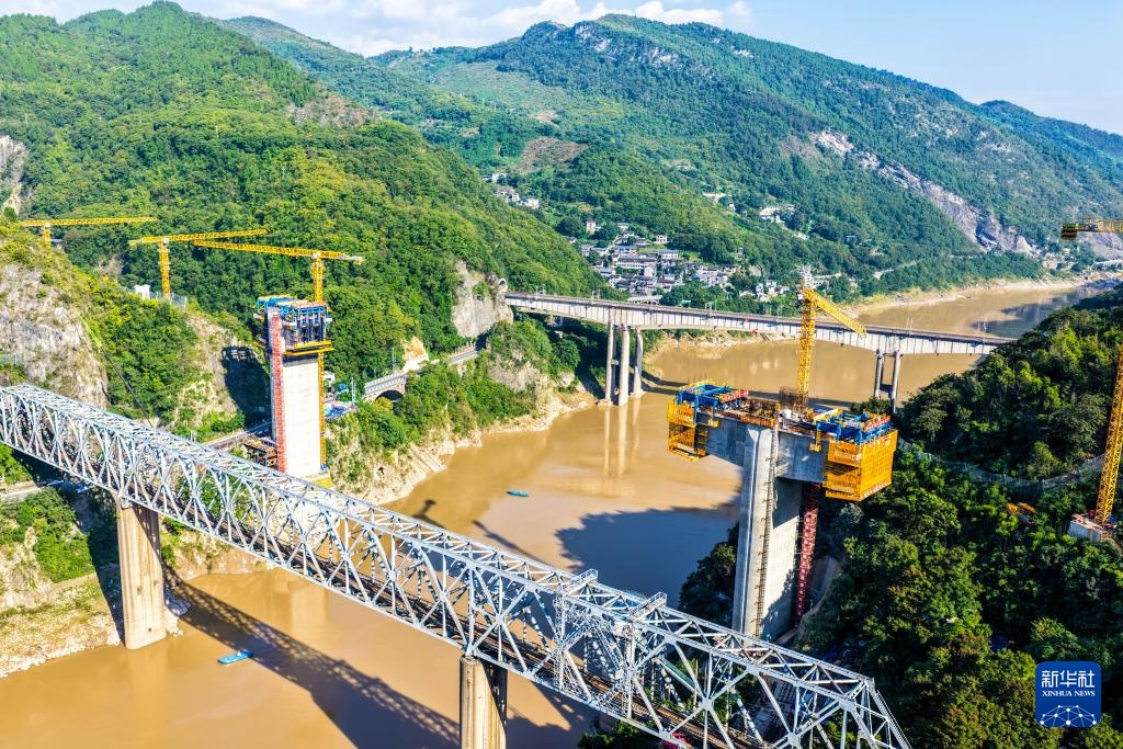 这是10月28日拍摄的西渝高铁嘉陵江特大桥建设现场(无人机照片)。