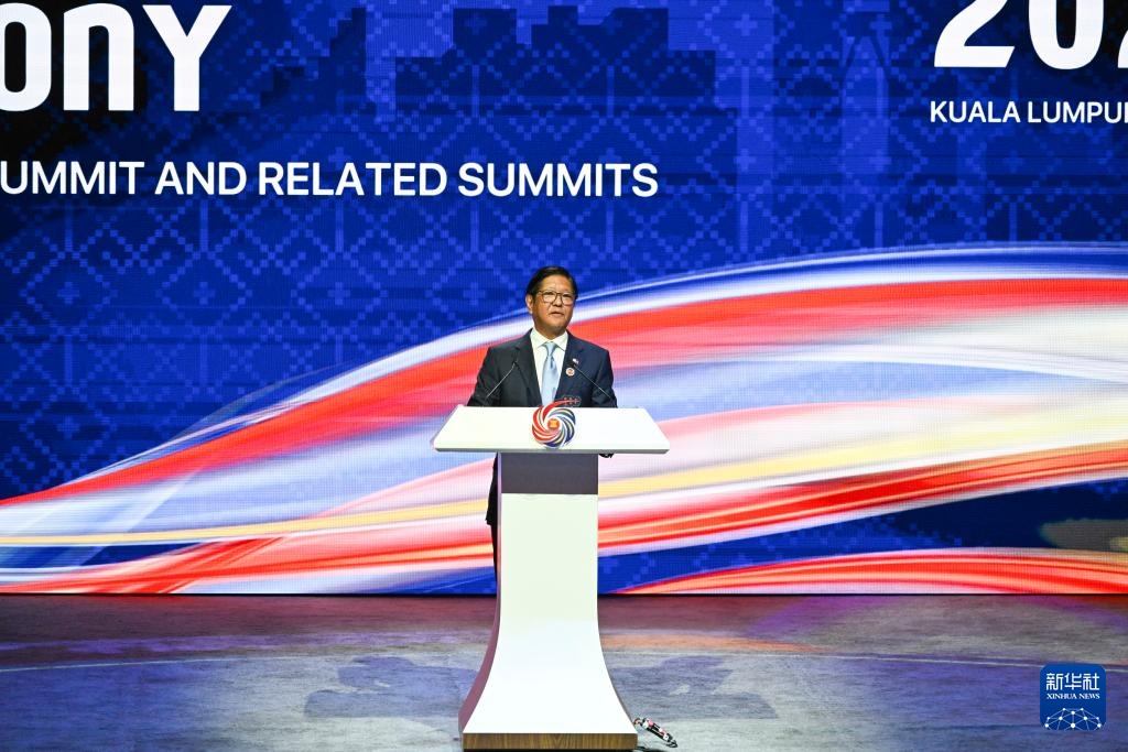 10月28日,在马来西亚吉隆坡,菲律宾总统马科斯在第47届东盟峰会及系列会议闭幕式上讲话。