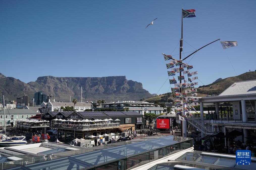 这是10月20日在南非开普敦拍摄的维多利亚和阿尔弗雷德海滨区一隅以及桌山。