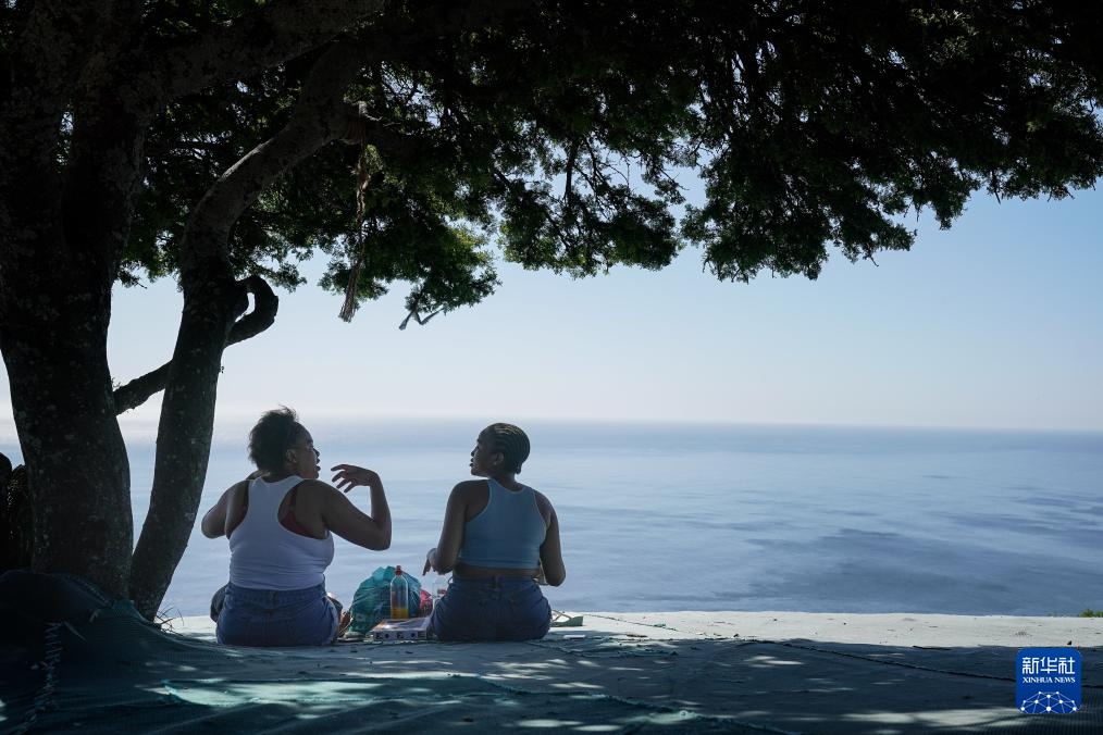 10月20日,两名女子在南非开普敦的锡格纳尔山山顶休闲。
