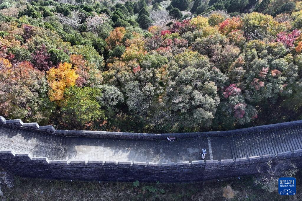 10月28日拍摄的天津市蓟州区黄崖关长城秋景(无人机照片)。
