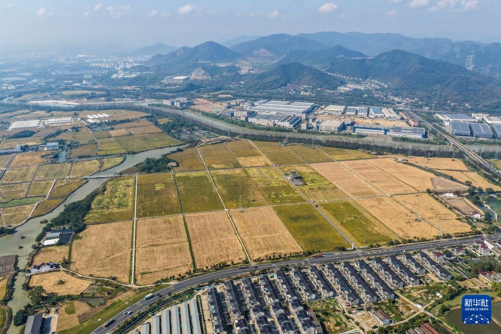 10月29日,空中俯瞰东林镇保国村的连片稻田(无人机照片)。