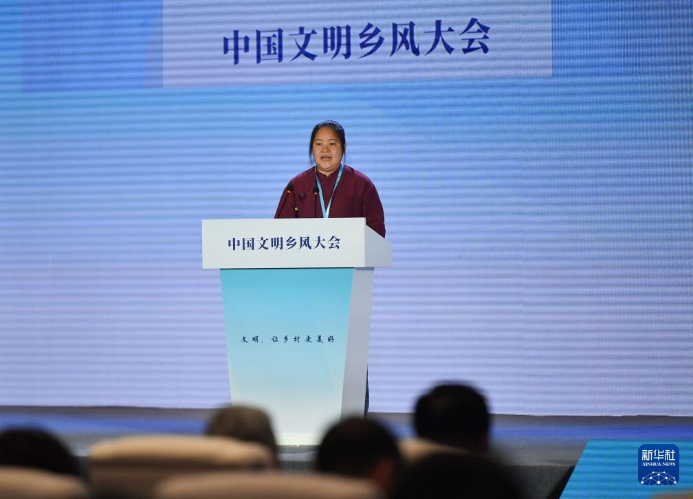 10月29日,山东省沂水县朱家坪村村民张欣作为农民群众代表在中国文明乡风大会发言。