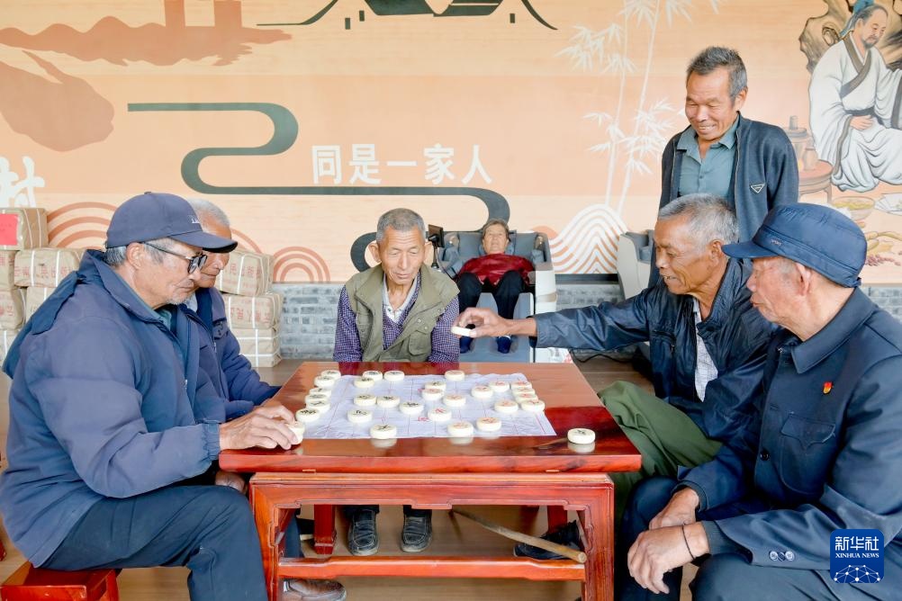 10月29日,老人在南涧县南涧镇西山村幸福小院下象棋。