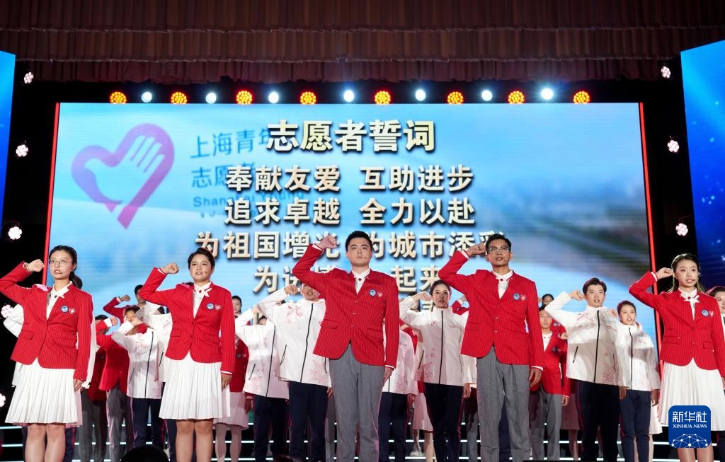 10月29日,第八届中国国际进口博览会志愿者上岗宣誓仪式在上海展览中心友谊会堂举行。志愿者将服务于现场引导咨询、展会注册管理、新闻宣传辅助、交易数据统计、医疗卫生辅助等岗位。