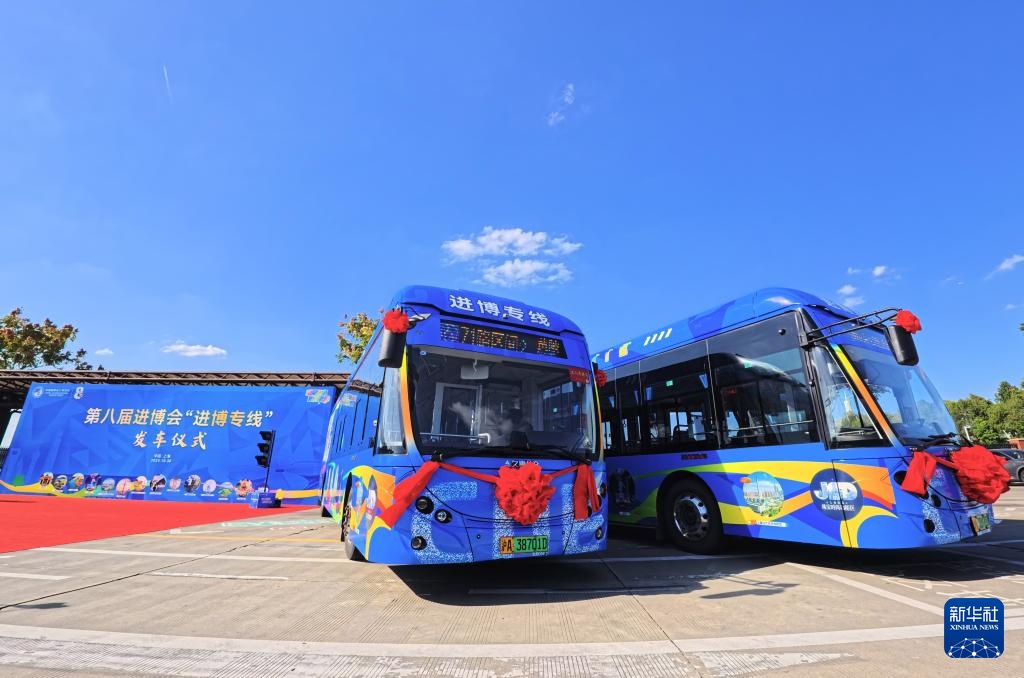 10月29日,第八届进博会“进博专线”发车仪式在上海举行。8辆“进博专线”车采用以“进博蓝”为主色调的彩色车衣设计,除了为展客商提供从外滩到国家会展中心(上海)往返交通便利外,还将巡游于市中心区域,串联起淮海路、静安寺、徐家汇、北外滩等热门商圈。第八届进博会“进博专线”于11月1日至30日全月运行。