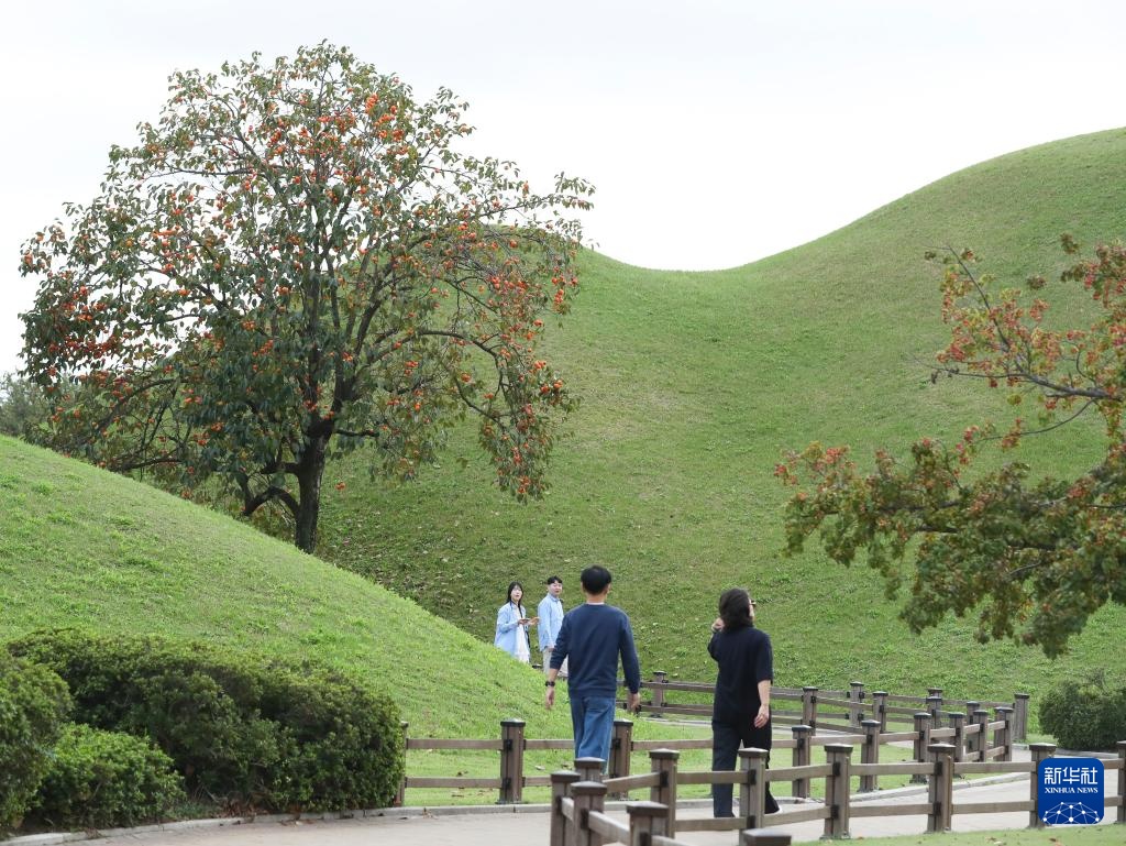 10月17日,游客在韩国庆州的大陵苑一带参观。