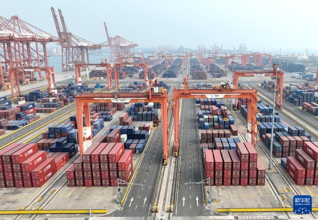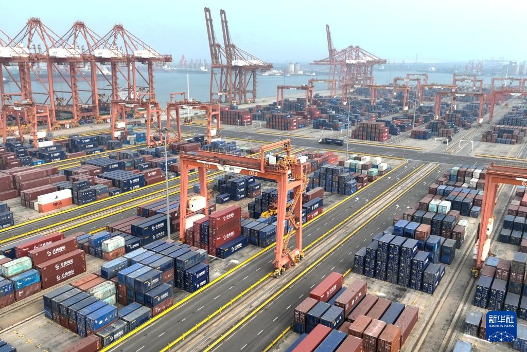 10月29日拍摄的唐山港京唐港区集装箱码头堆场(无人机照片)。