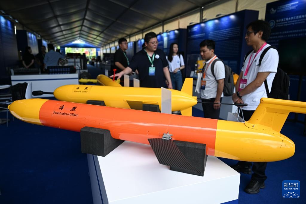 10月29日在深海先进技术及装备成果展上拍摄的“海燕”系列水下滑翔机(模型)。