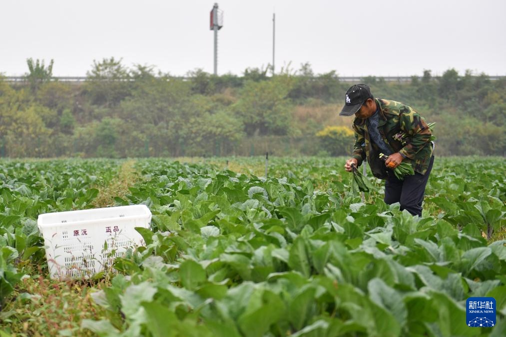 10月30日,菜农在沅江市草尾镇乐园村蔬菜田里采收蔬菜。