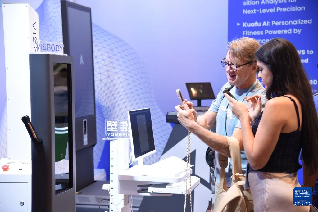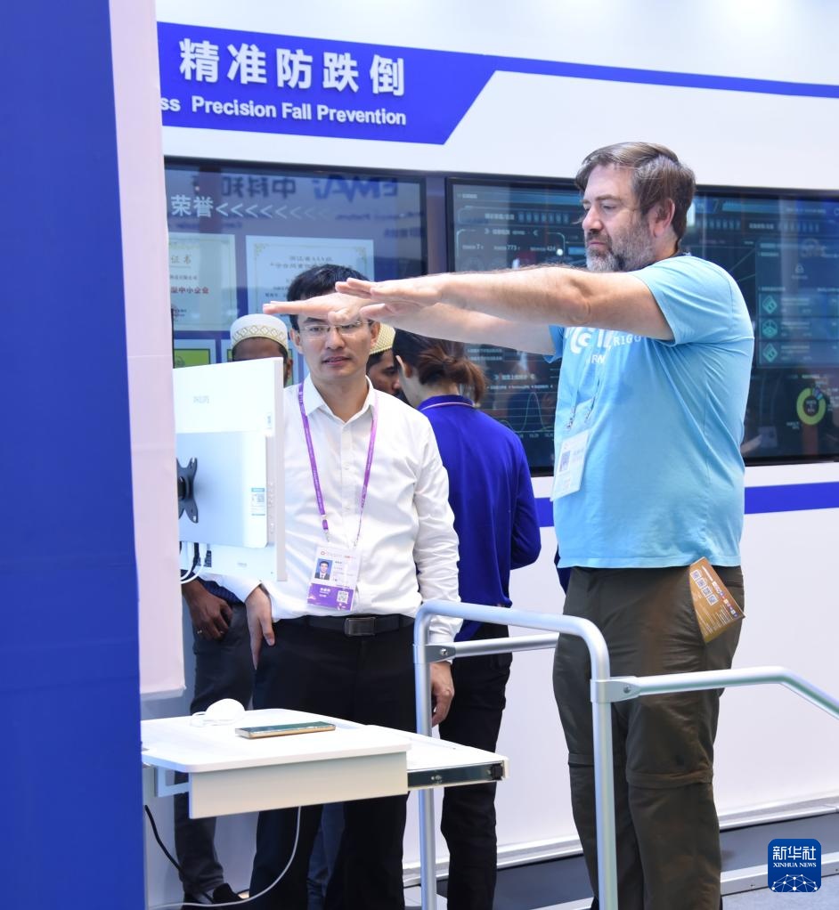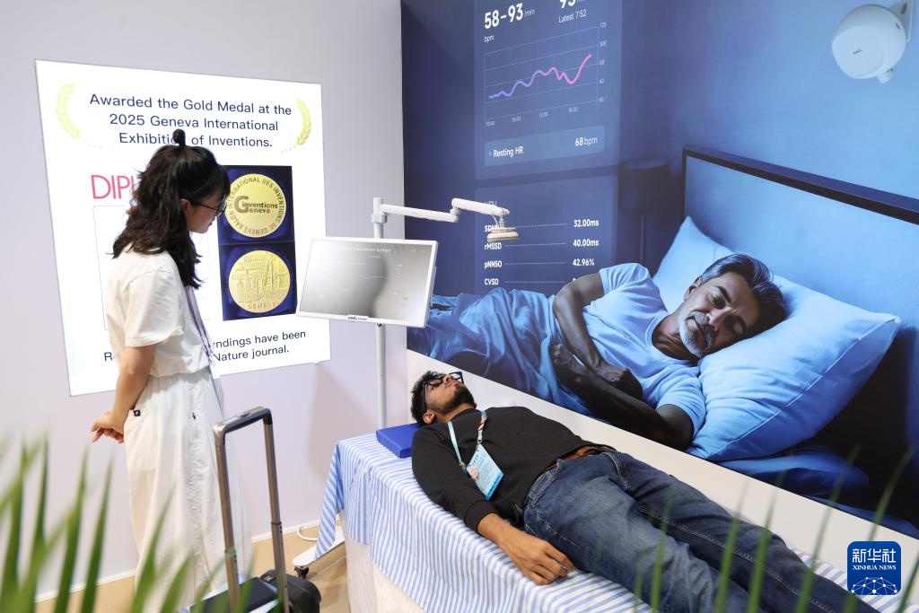 10月31日,客商在广交会智慧医疗专区体验一款非接触式心脏健康监测系统。