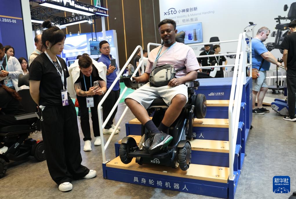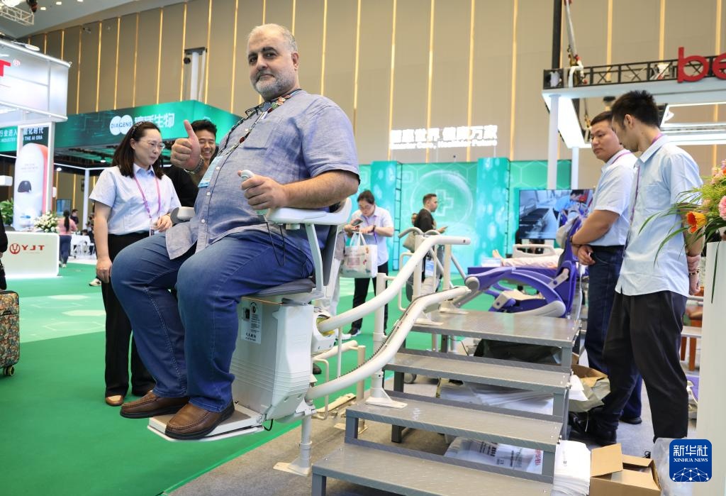 10月31日,客商在广交会智慧医疗专区体验一款座椅电梯。