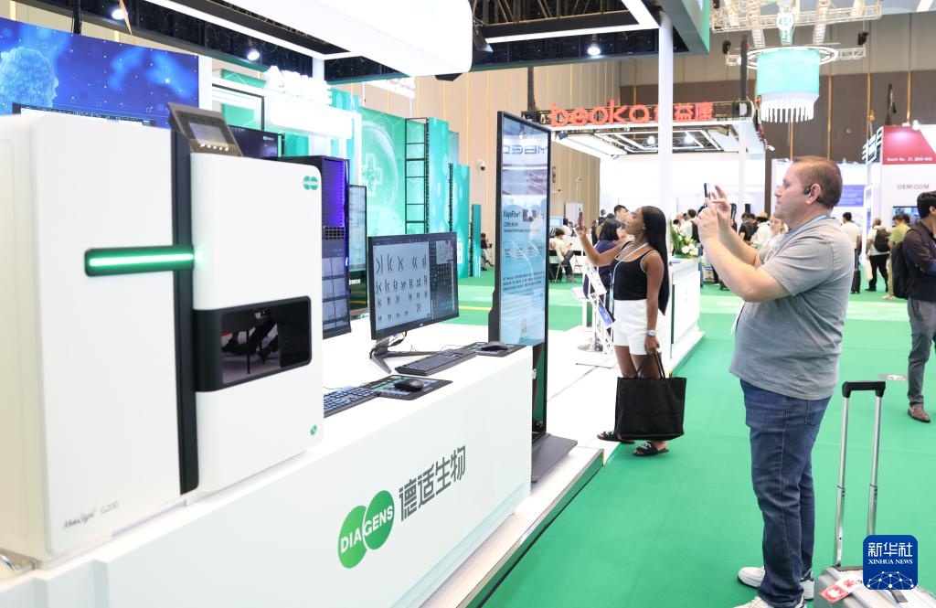 10月31日,客商在广交会智慧医疗专区拍摄展品。
