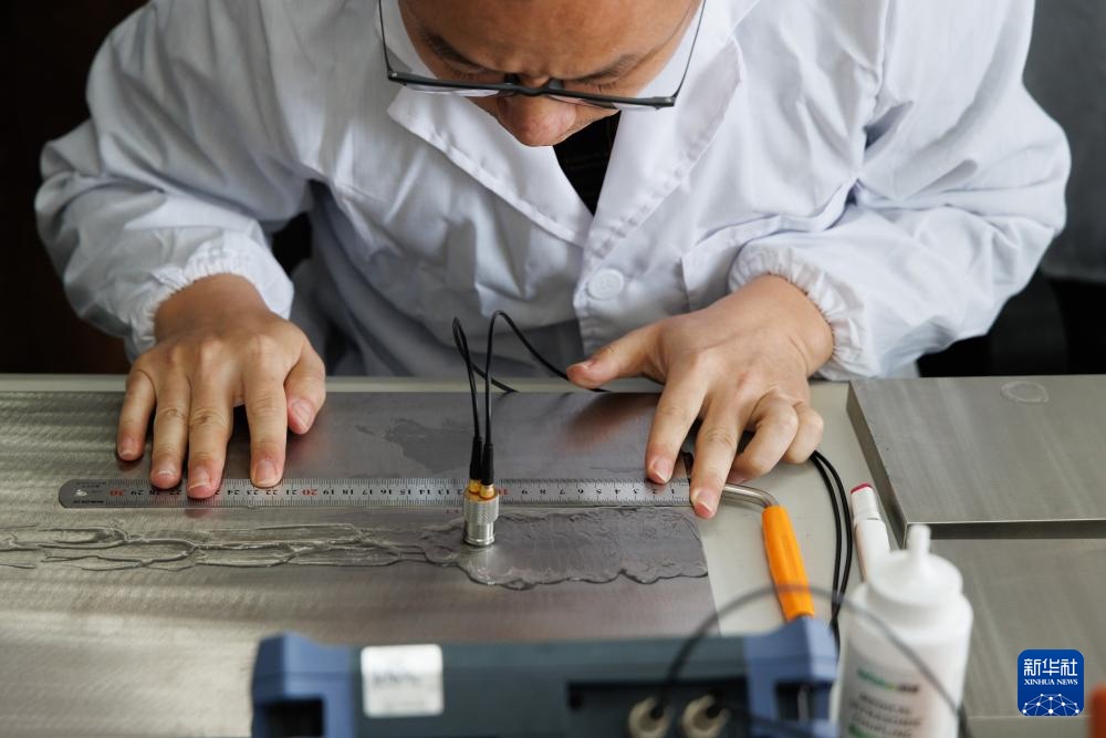 10月23日,在位于中国科学院上海应用物理研究所嘉定园区的无损检测实验室,科研人员在观察用于建设液态燃料钍基熔盐实验堆的合金材料的焊接质量。