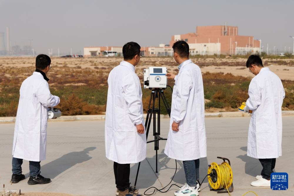 10月24日,科研人员在实验堆室外进行环境监测。