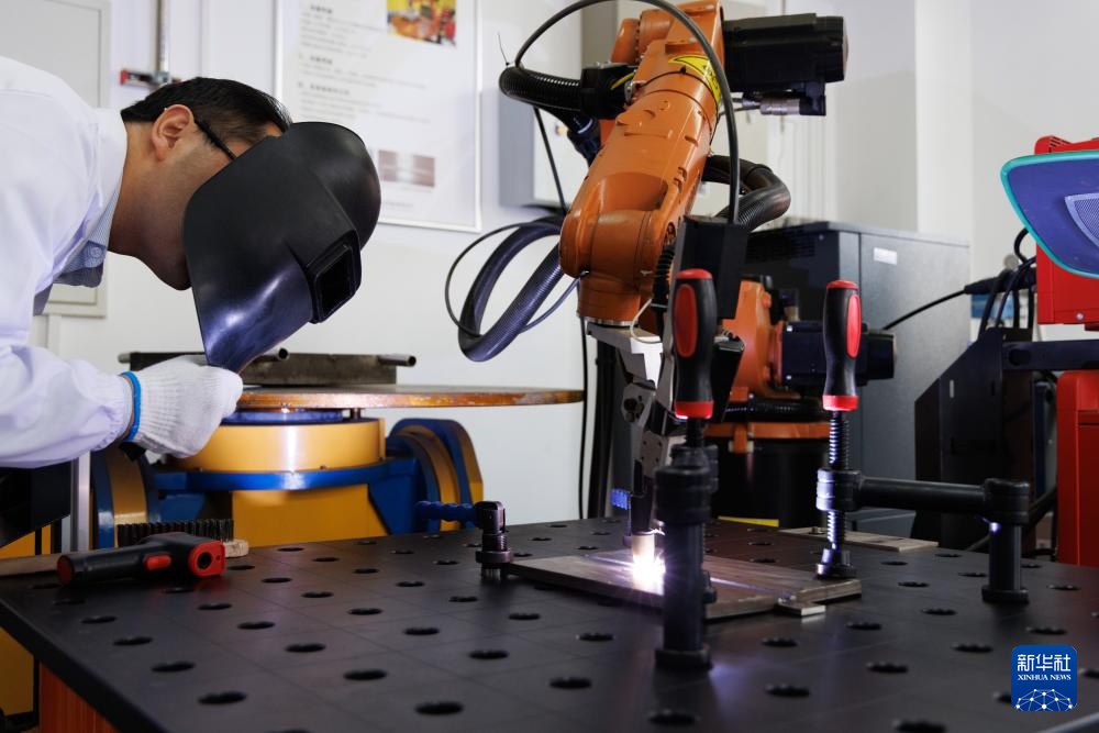 10月23日,在位于中国科学院上海应用物理研究所嘉定园区的焊接实验室,科研人员在观察用于建设液态燃料钍基熔盐实验堆的合金材料的焊接进展。