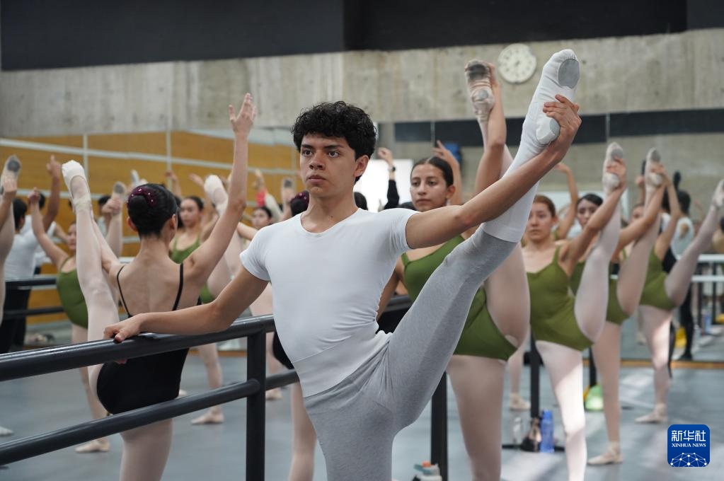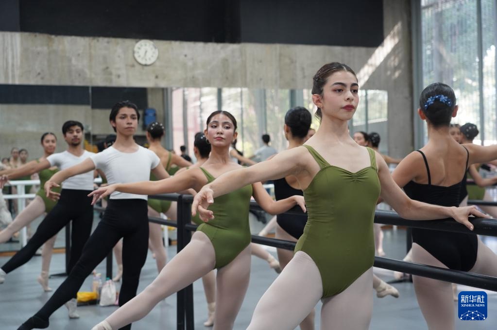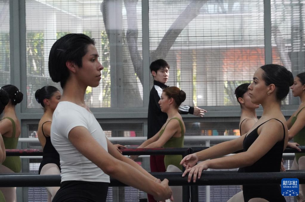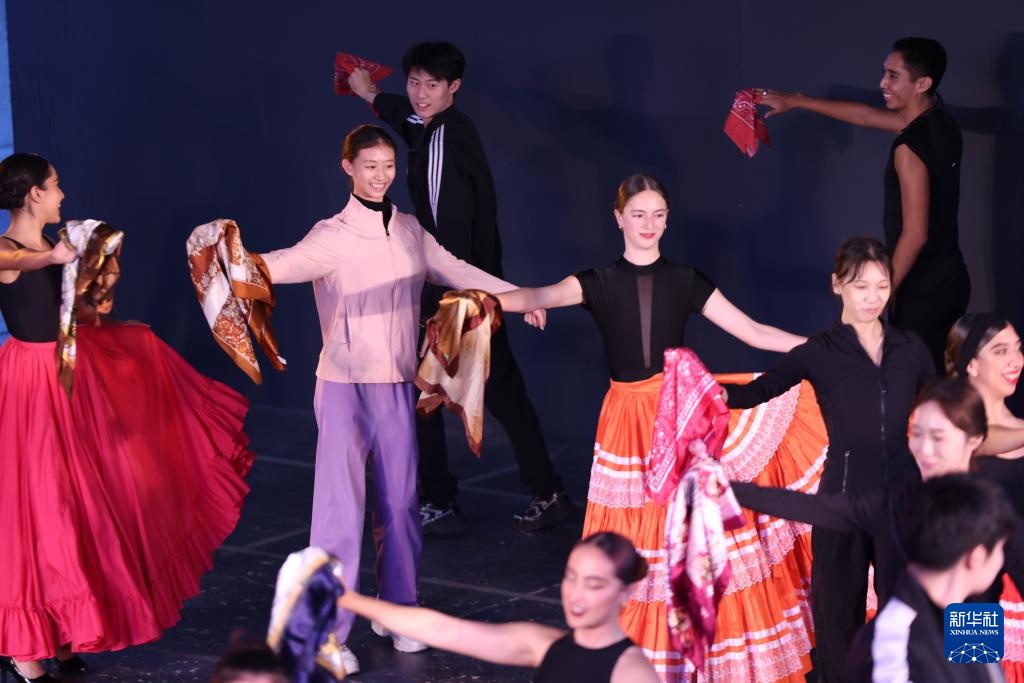 当日,在墨西哥首都墨西哥城,中央芭蕾舞团为墨西哥两所舞蹈学校学生教授大师课,并学习墨西哥当地舞蹈。