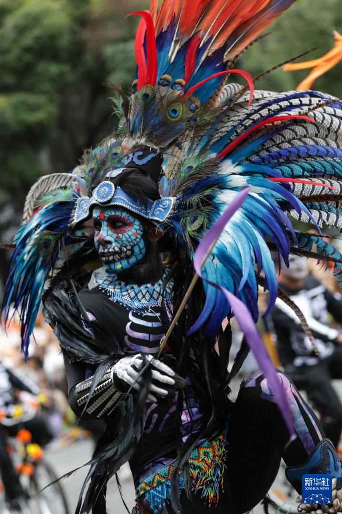11月1日,在墨西哥首都墨西哥城,演员参加亡灵节游行。
