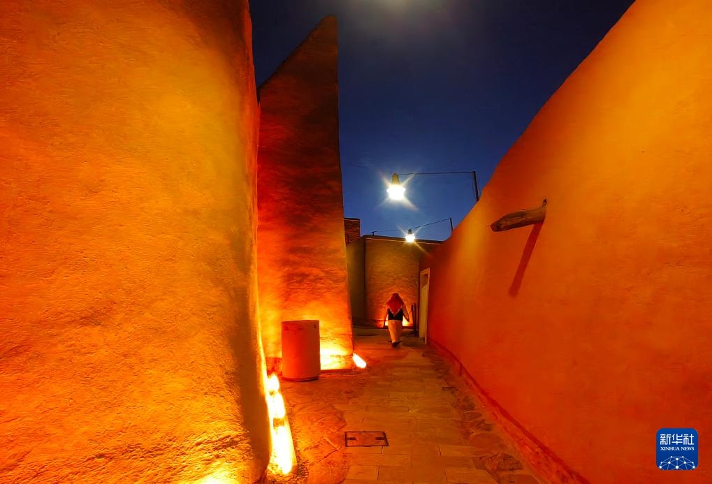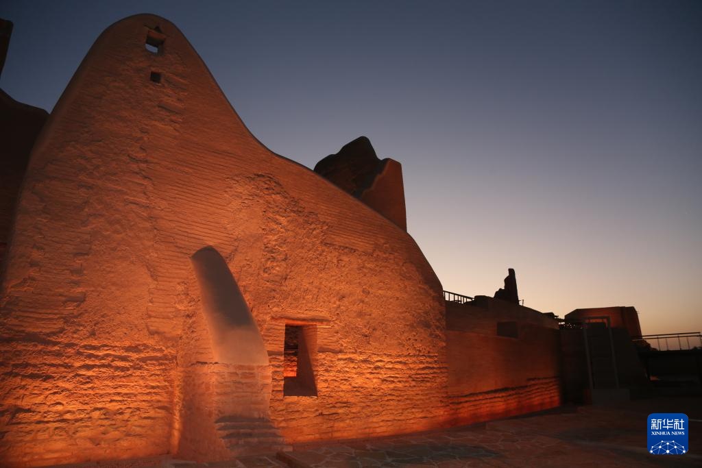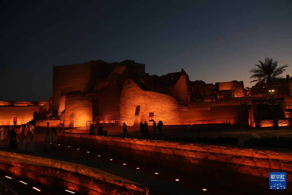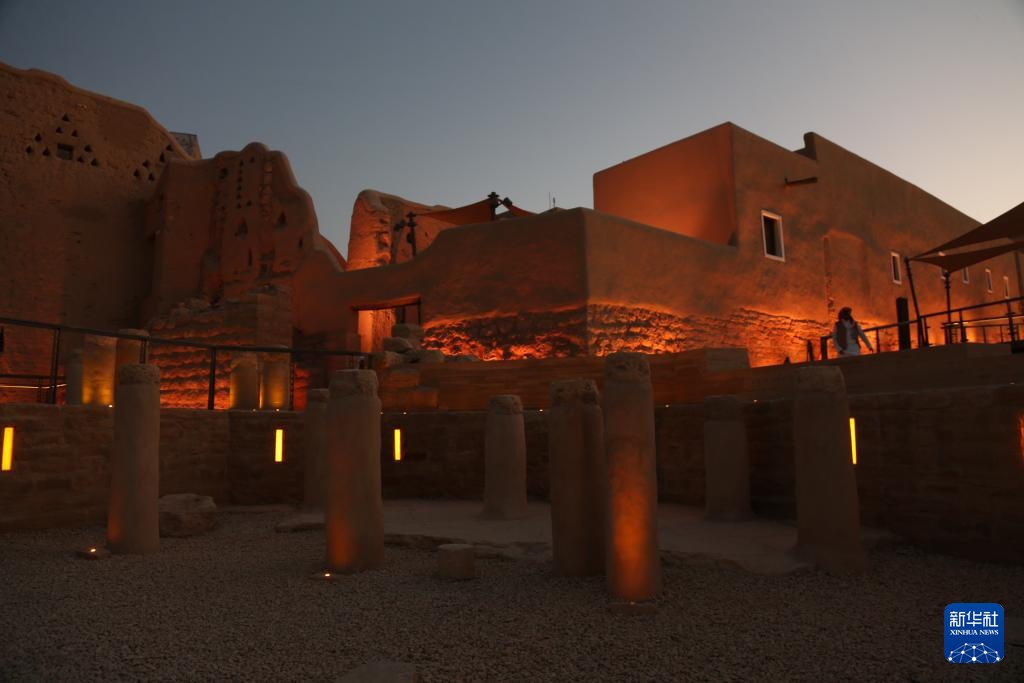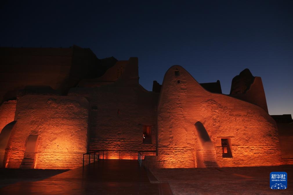 这是10月27日在沙特首都利雅得市区拍摄的迪里耶夜景。