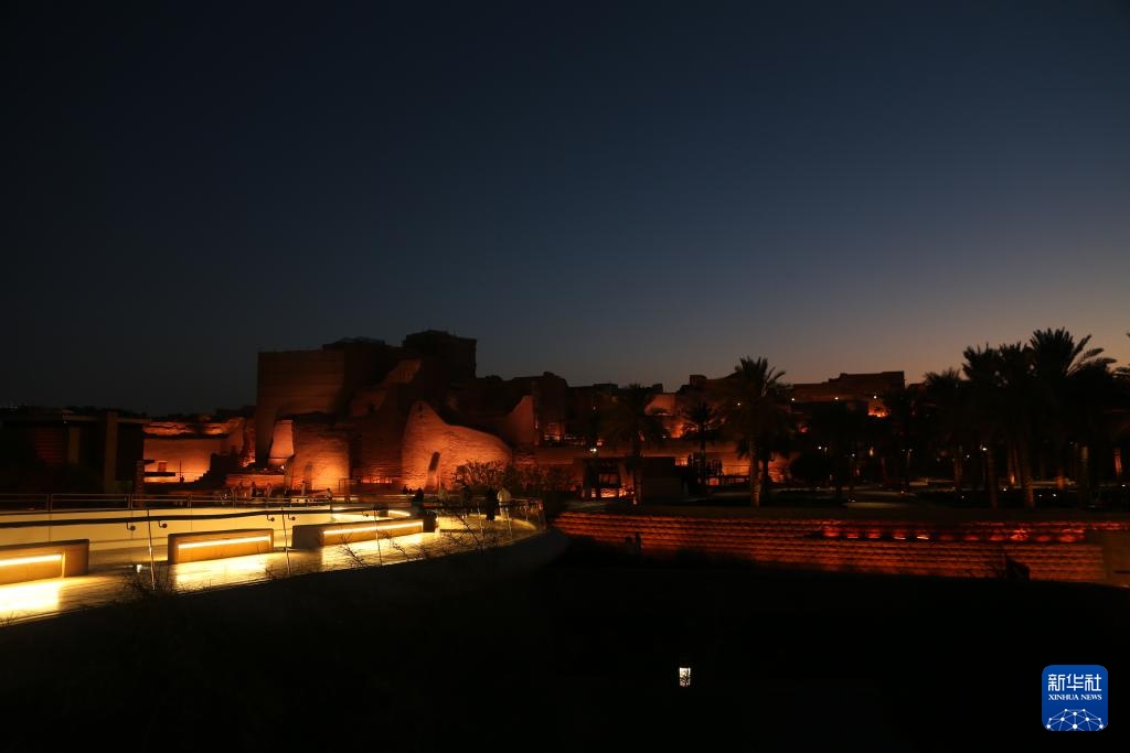 这是10月29日在沙特首都利雅得市区拍摄的迪里耶夜景。