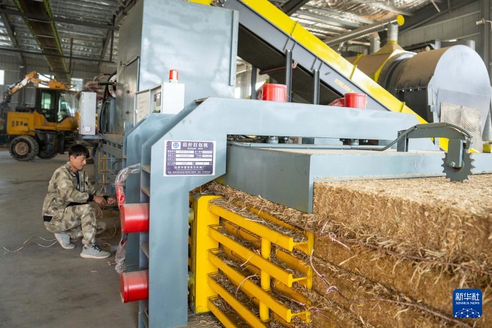 11月5日,在位于长沙县开慧镇的长沙萱凡农业发展有限公司秸秆饲料化加工车间,工人操作秸秆打包机。