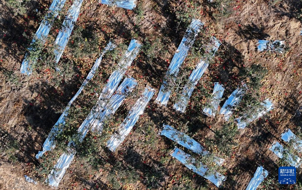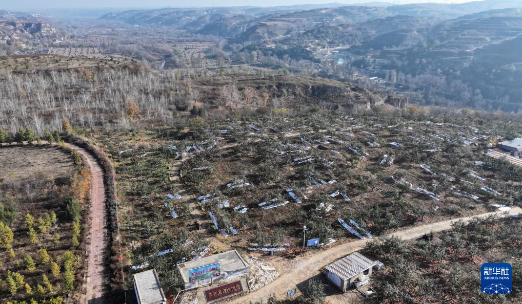 这是位于陕西省榆林市横山区赵石畔镇一处苹果园(11月4日摄,无人机照片)。