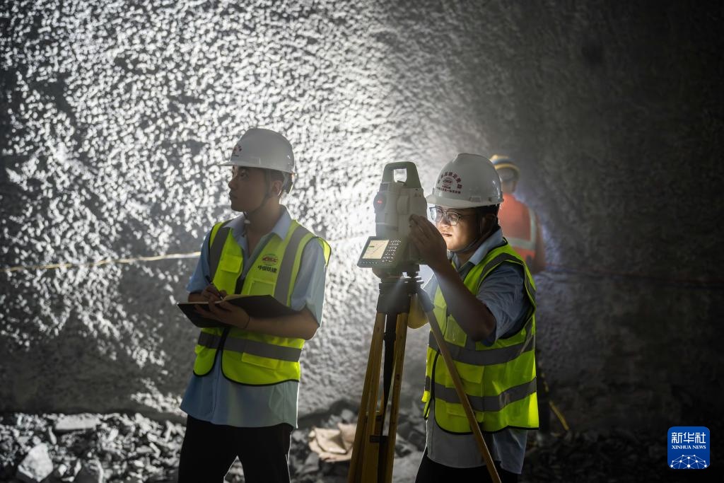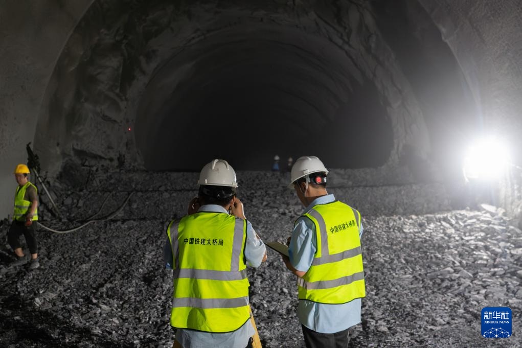 11月6日,测量人员在渝昆高铁彝良隧道右线测量贯通误差。