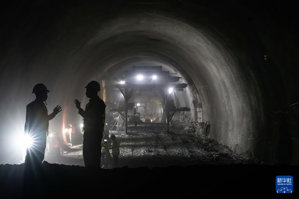 11月6日,参建人员在渝昆高铁彝良隧道右线内交流。