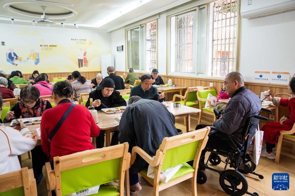11月6日,在长沙市望城区高塘岭街道中南社区睦邻食堂,当地老年人及残疾人士在用餐。