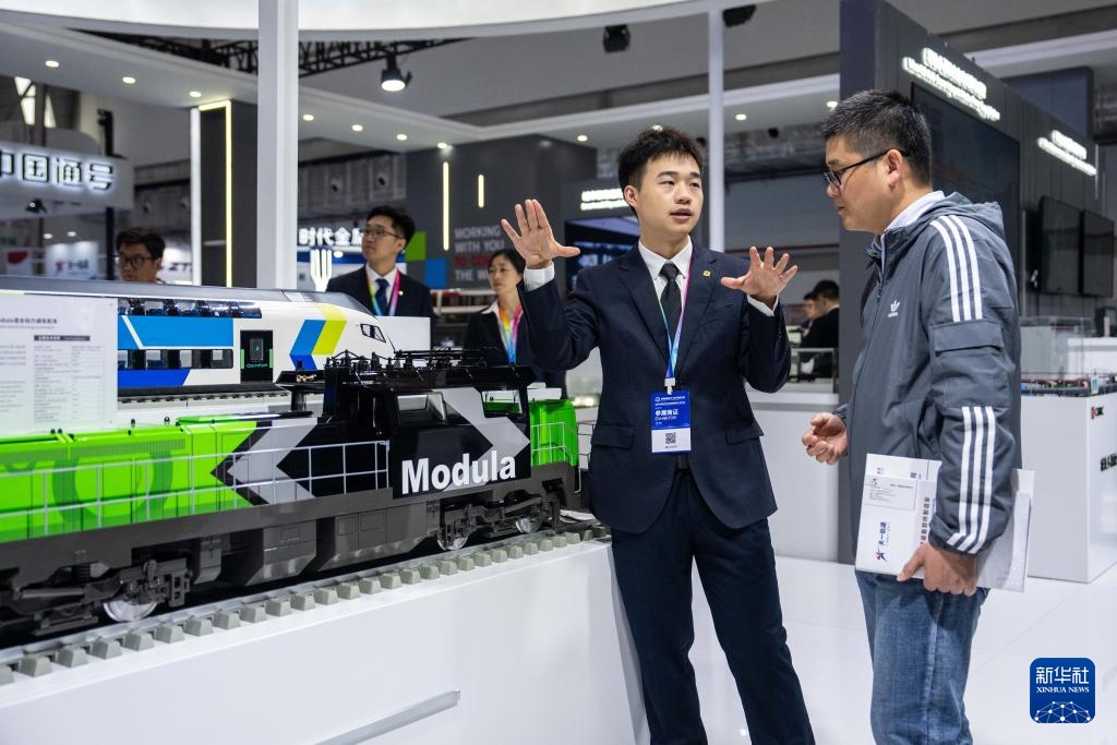 11月7日,观众在株洲国际会展中心了解国产列车产品。