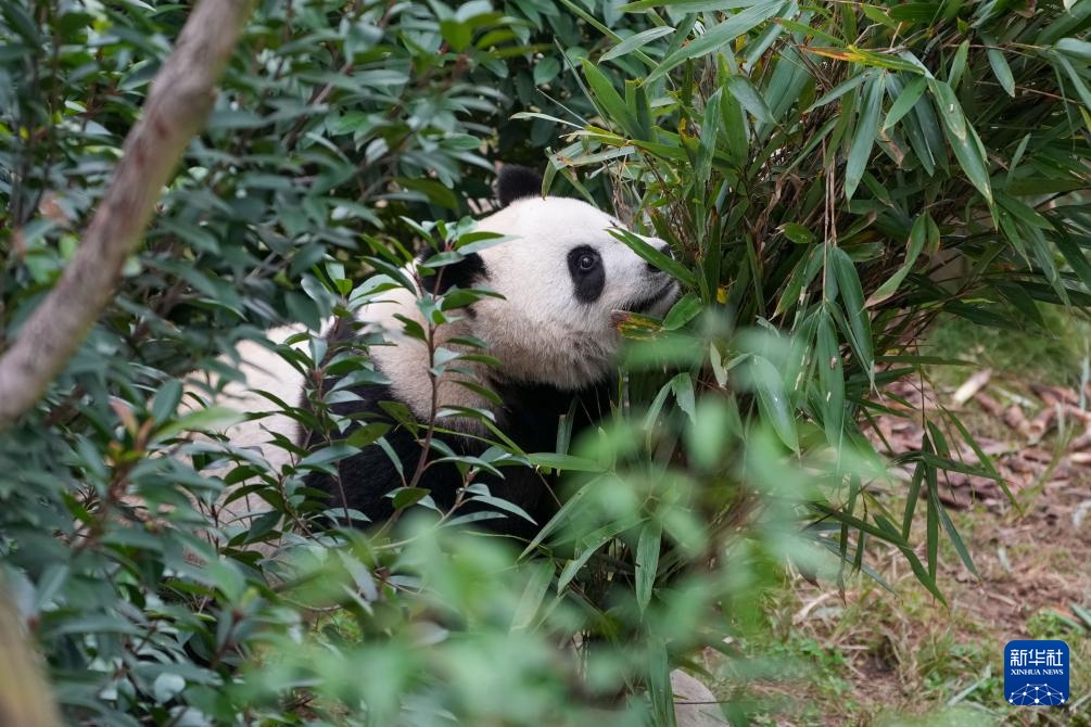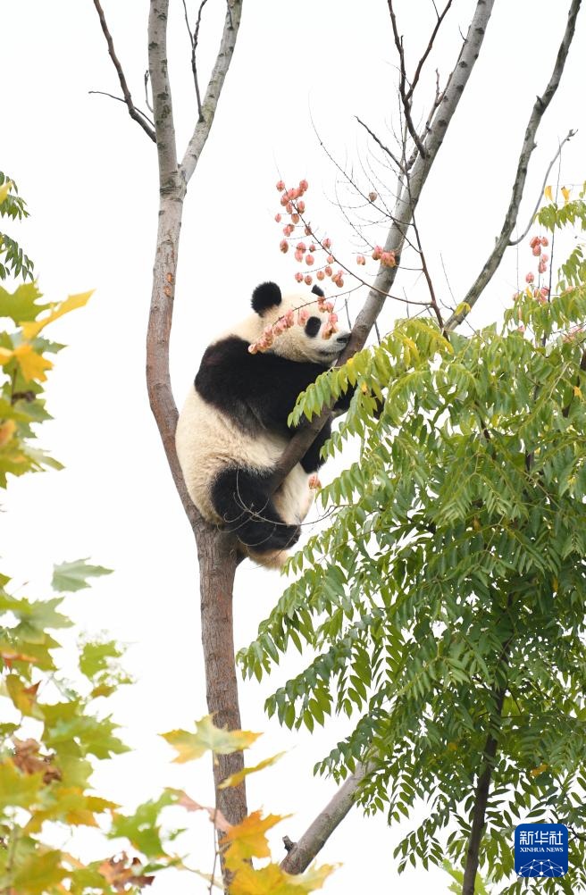11月6日在中国大熊猫保护研究中心神树坪基地拍摄的大熊猫“森森”。