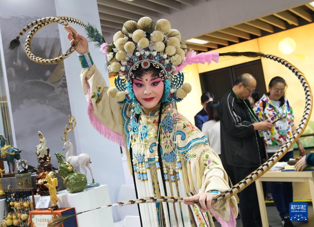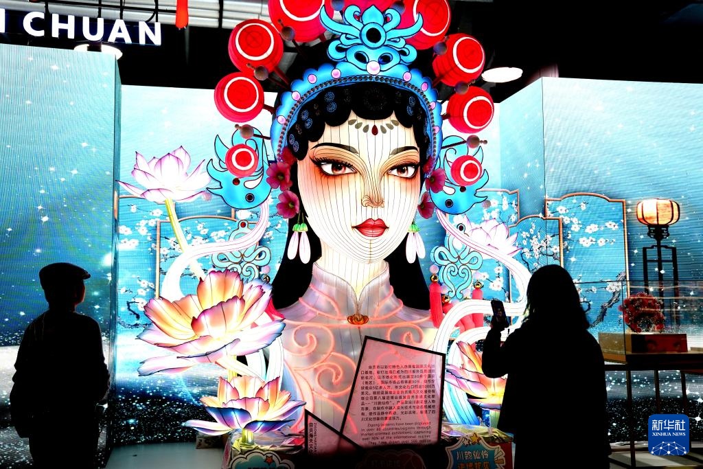 11月7日,首发首秀艺术作品“川剧仙伶”在第八届进博会四川展区吸引观众参观。