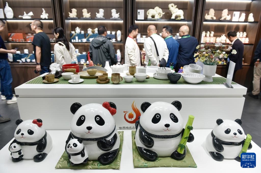 11月6日,观众在第八届进博会人文交流展区的福建德化白瓷展厅参观。
