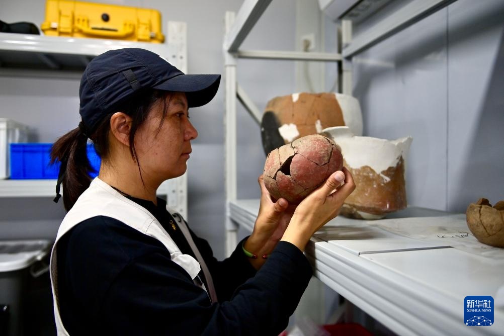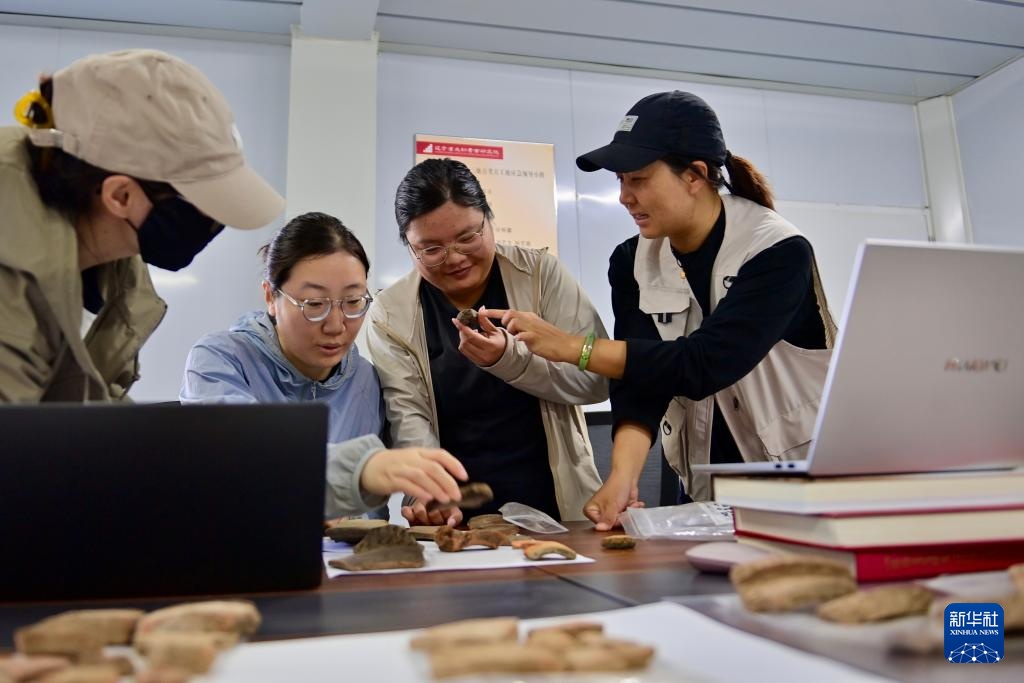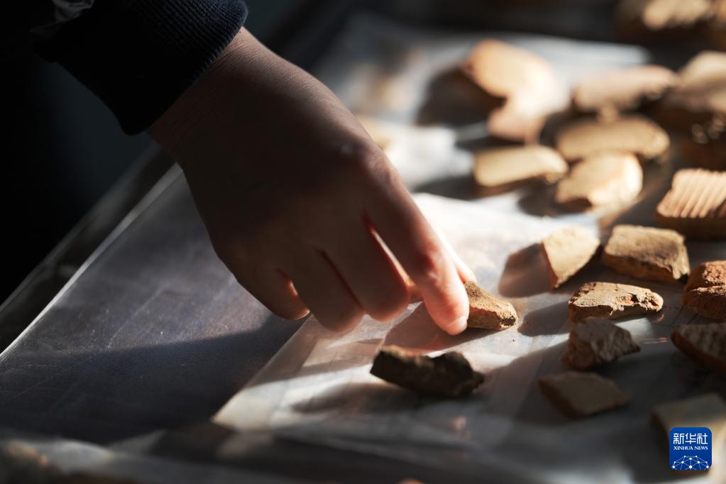 10月23日,工作人员在位于辽宁朝阳的牛河梁工作站分拣陶片。