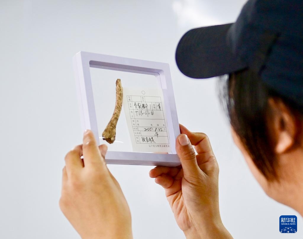 9月28日,于怀石在位于辽宁朝阳的牛河梁工作站内查看骨骸残件。