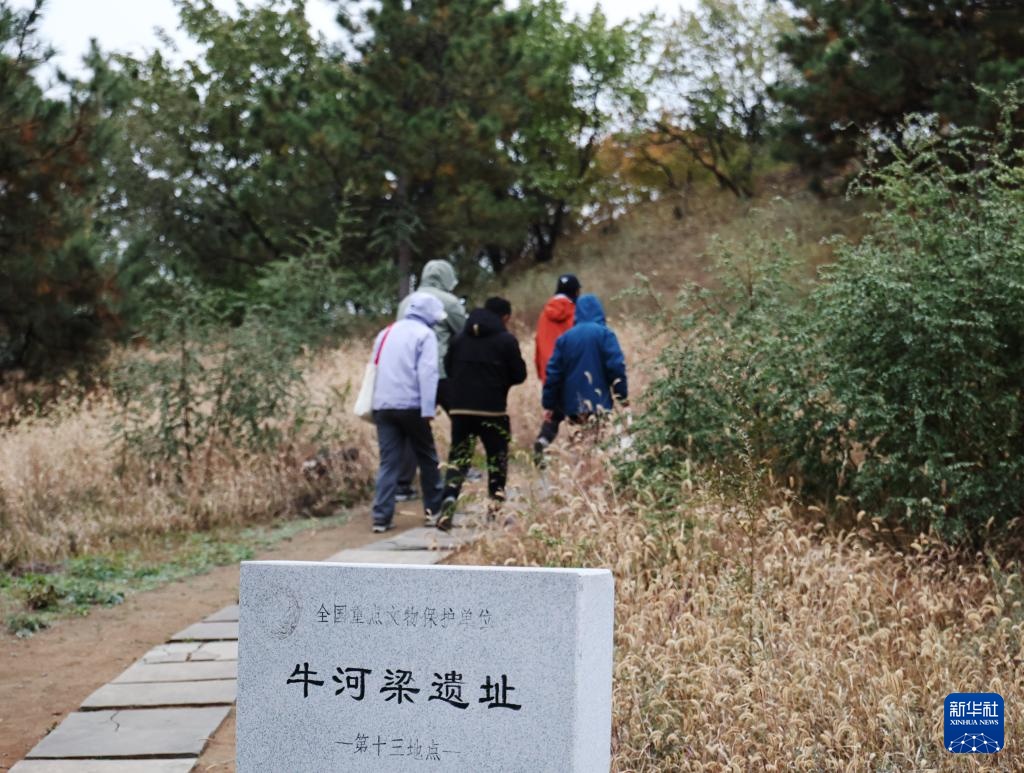 10月24日,于怀石(右二)和同事在位于辽宁朝阳的牛河梁遗址第十三地点工作。