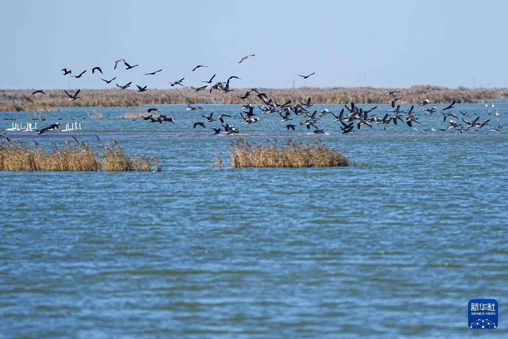 初冬时节,位于山东省东营市的黄河三角洲国家级自然保护区迎来大批越冬候鸟。每逢秋冬候鸟迁徙季,这里便成为鸟类天堂,万鸟翔集,场面蔚为壮观。据了解,每年有超过200种候鸟在此繁殖、越冬和迁徙停歇。