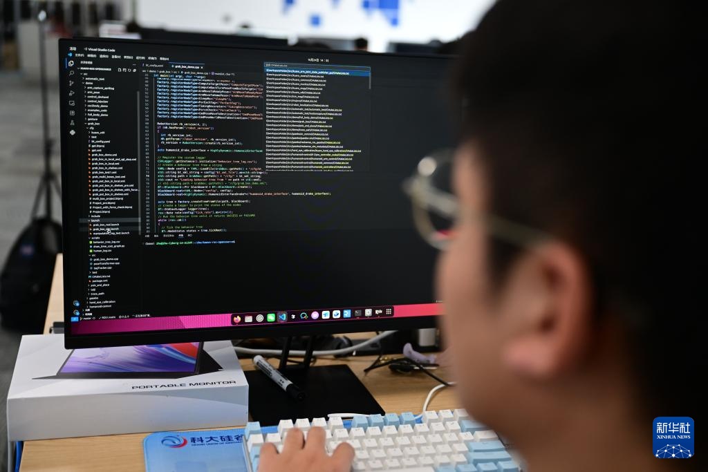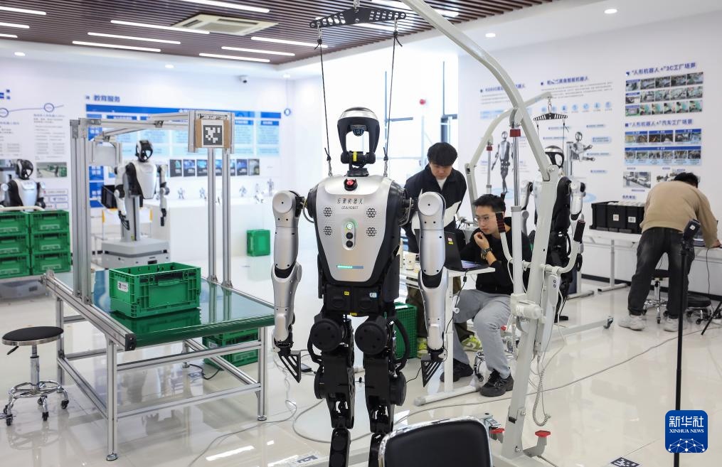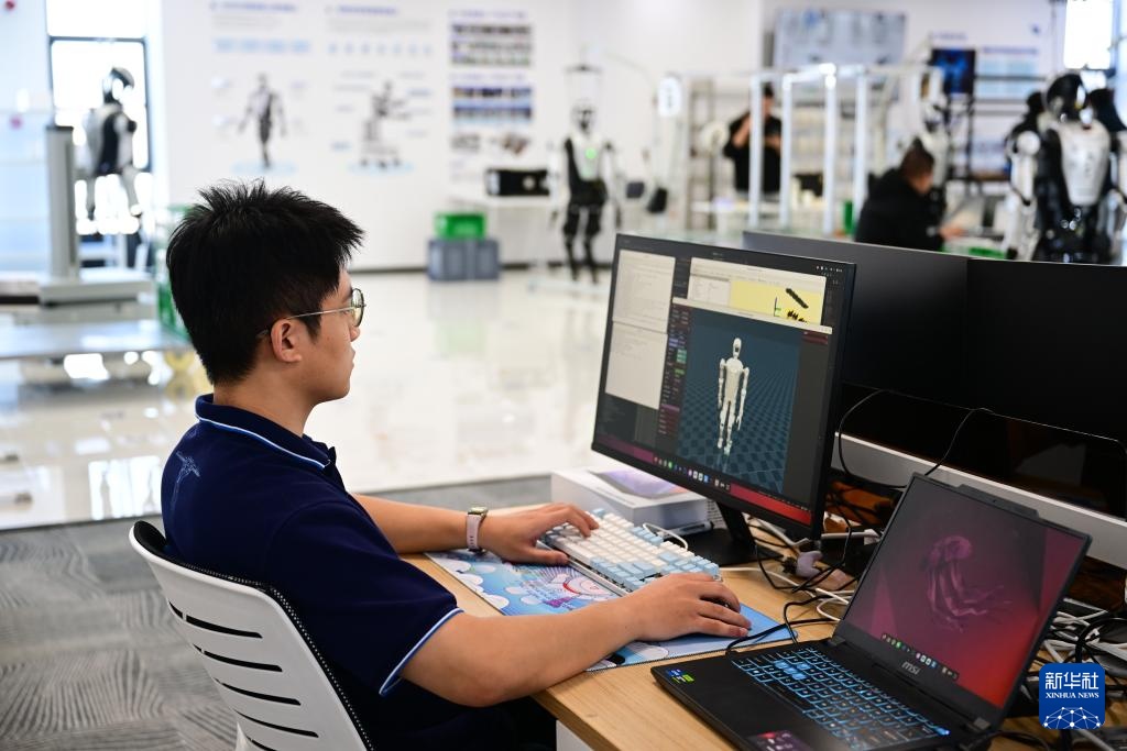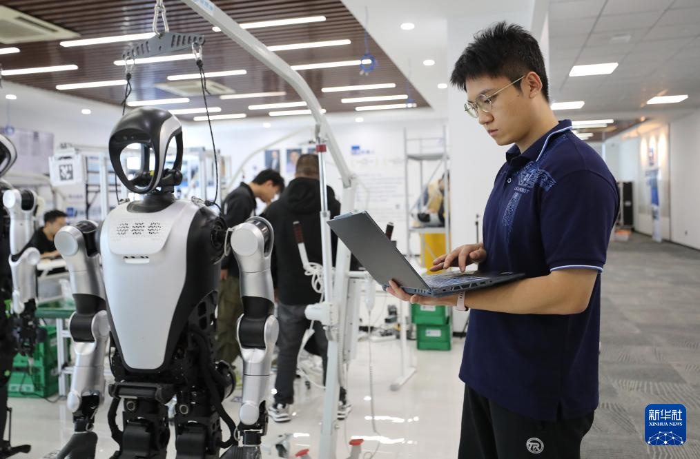 10月24日,在合肥乐聚机器人技术有限公司,工作人员在查看人形机器人的测试数据。新华社记者 杜潇逸 摄