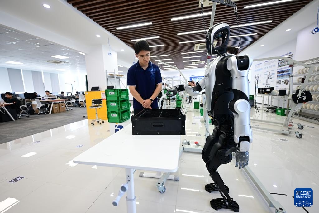 今年26岁的张鸿伟是合肥乐聚机器人技术有限公司的机器人应用开发工程师。他介绍,人形机器人可以识别和感知真实环境,并自主通过计算进行判断和行动决策进而完成指令,同时不断学习迭代,即所谓的“具身智能”。