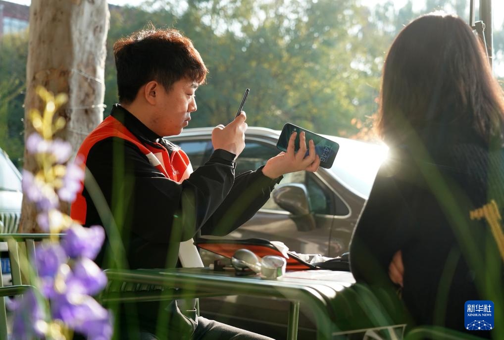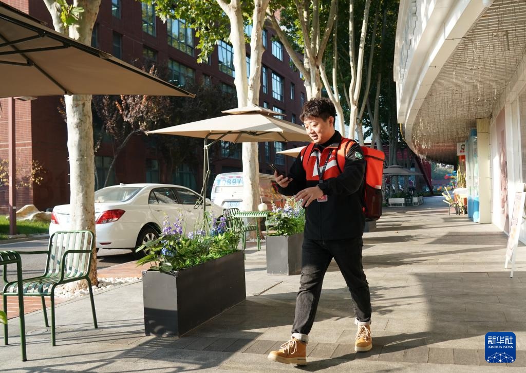 11月4日,姜明在北京一处产业园内联系需要上门回收服务的客户。