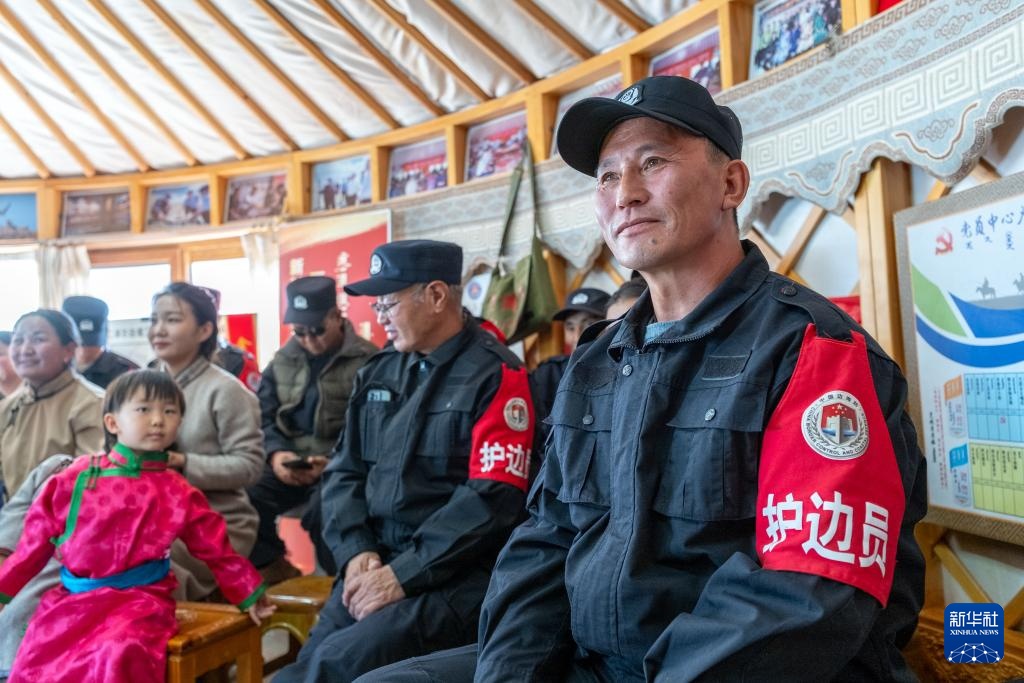11月12日,在苏尼特右旗额仁淖尔苏木吉呼郎图嘎查赛音巴特尔护边驿站,护边员们在观看乌兰牧骑的演出。