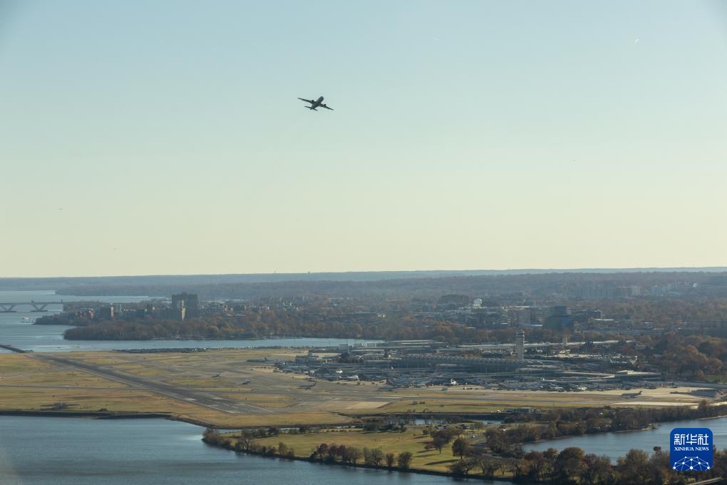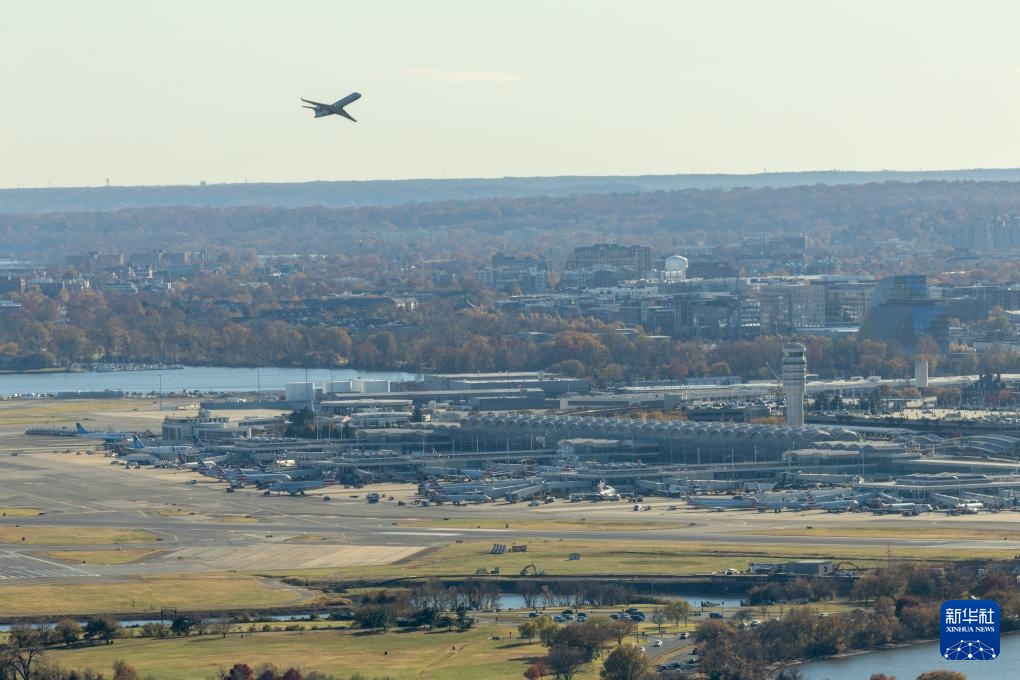 这是11月17日从美国首都华盛顿的华盛顿纪念碑上拍摄的位于弗吉尼亚州阿灵顿的里根国家机场。