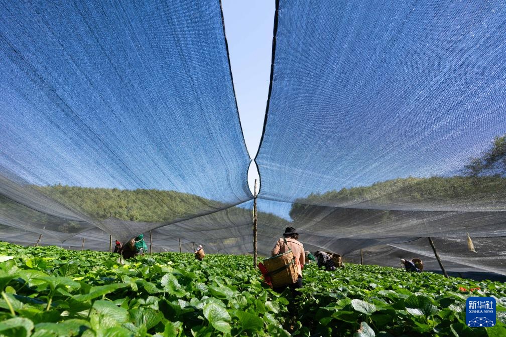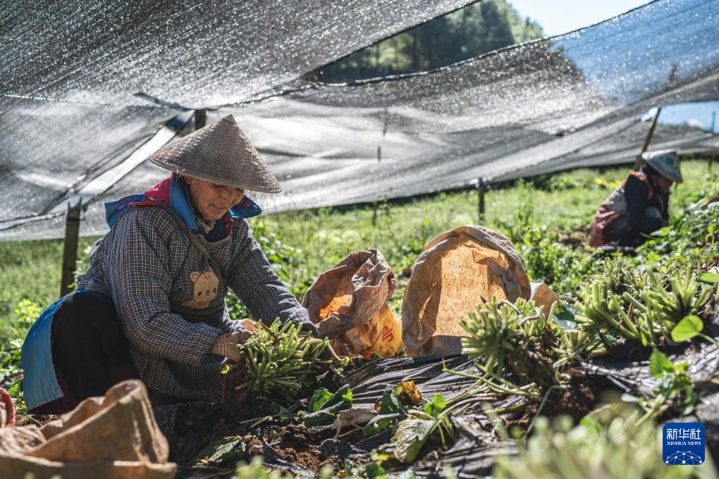 11月17日,农民在云南省保山市隆阳区杨柳白族彝族乡冷水村一处山葵种植基地内采摘山葵。