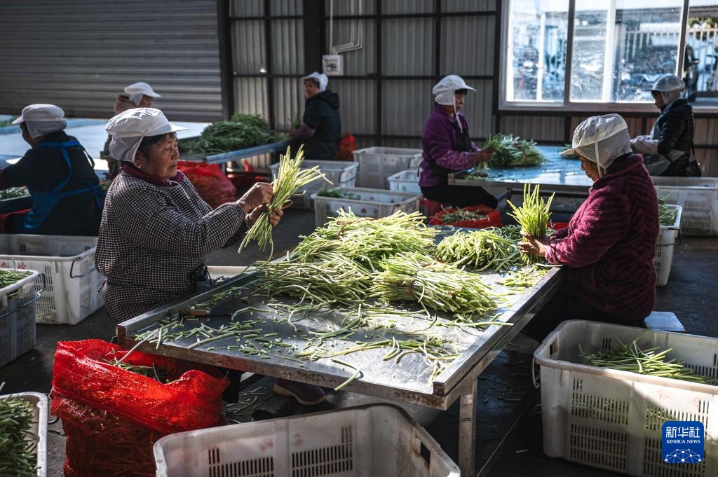 11月18日,工人在云南省保山市隆阳区板桥镇的保山市山葵实业开发有限责任公司加工车间内初加工山葵叶柄。