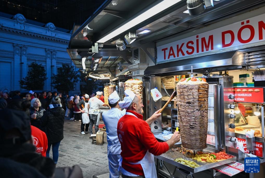 11月19日,厨师在伊斯坦布尔独立大街上的餐馆制作土耳其旋转烤肉。