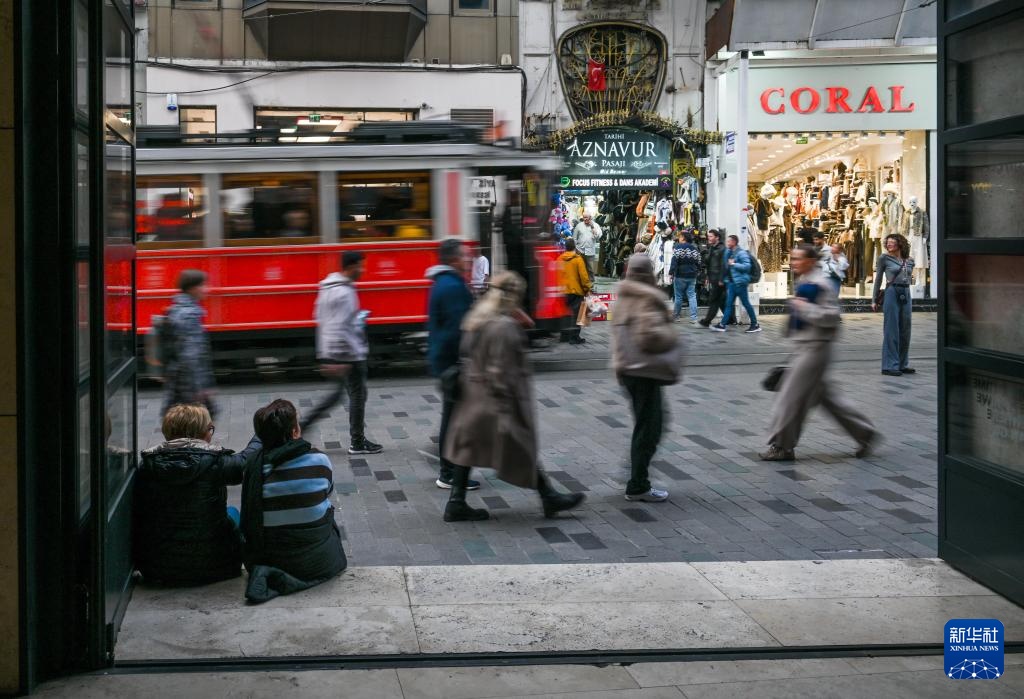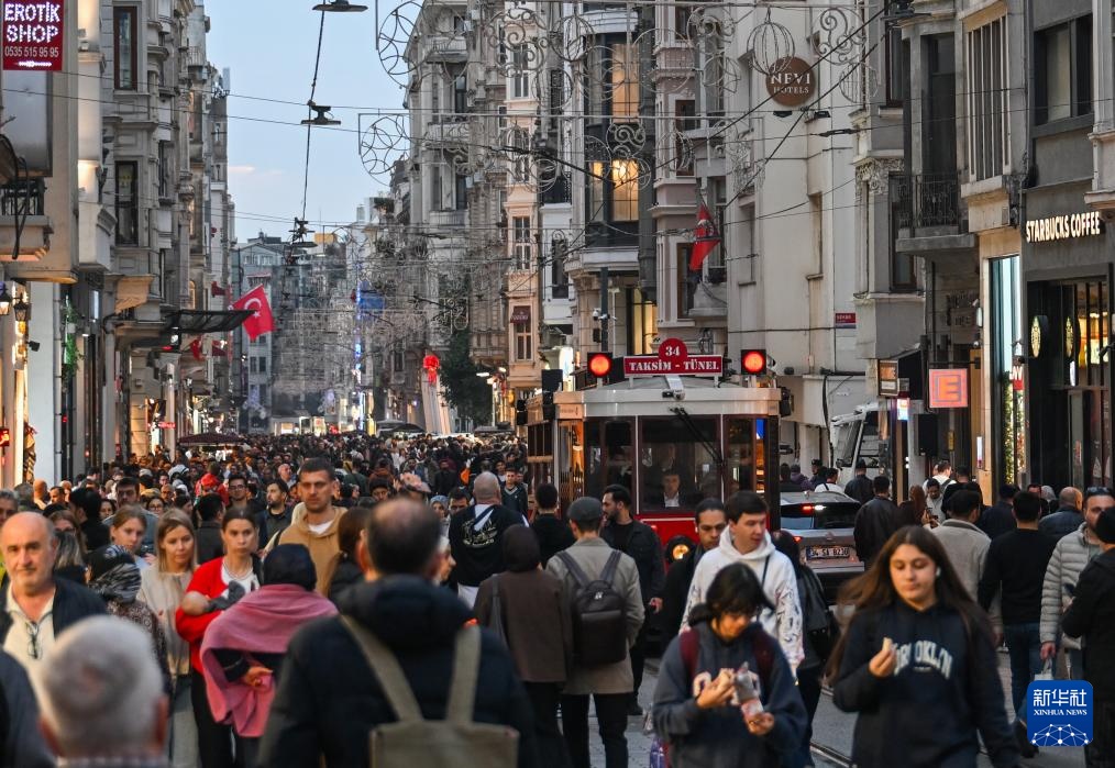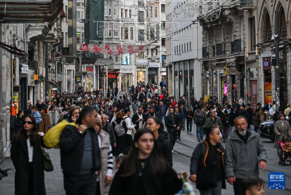 11月19日,人们在土耳其伊斯坦布尔的独立大街上逛街购物。