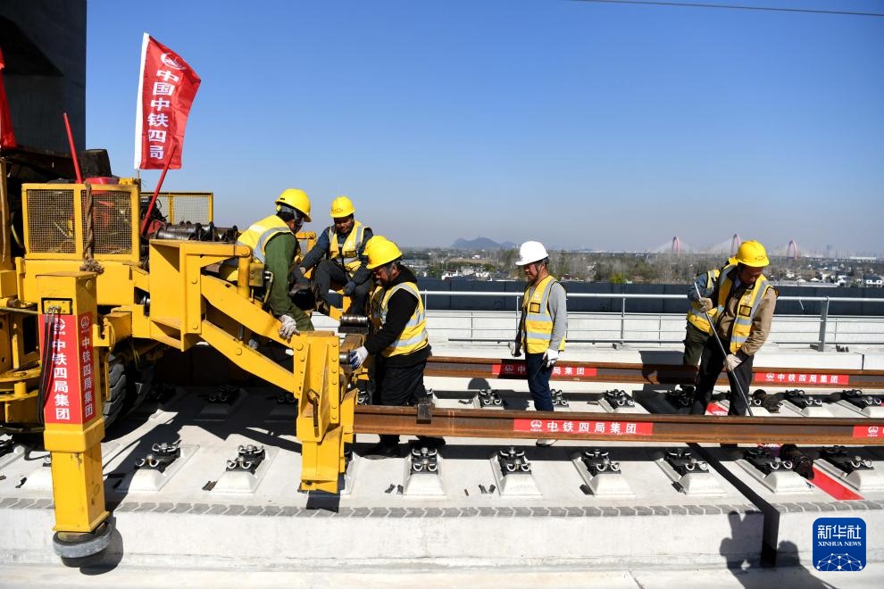11月20日,在巢马城际铁路铺轨施工现场,中铁四局施工人员将首对500米长钢轨铺设在无砟轨道上,这标志着巢马城际铁路全线开始铺轨。巢马城际铁路是国家“八纵八横”高铁网沪汉蓉快速通道合肥至上海间的重要组成部分,设计时速350公里。