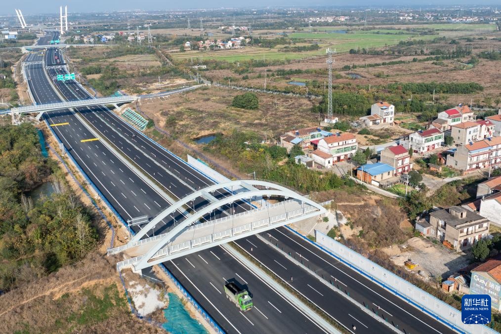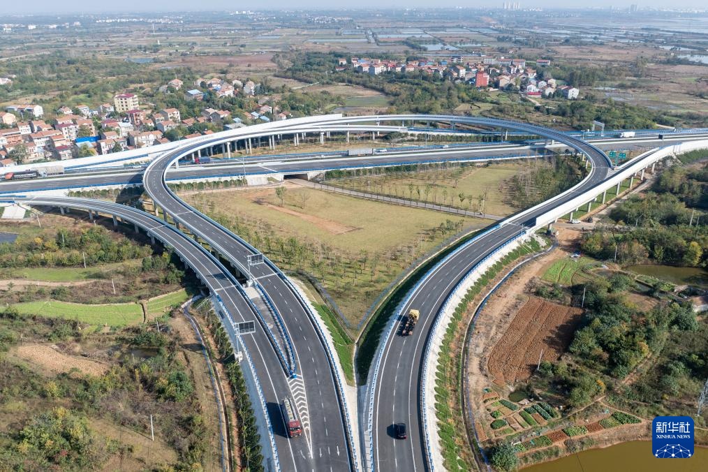 这是11月20日拍摄的京港澳高速公路改扩建孝感东互通枢纽(无人机照片)。