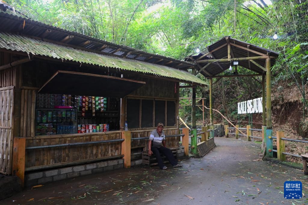 这是11月13日在印度尼西亚东爪哇省布尔沃索诺村“清凉溪”旁拍摄的村民瑟拉梅特和家人开的小卖部。